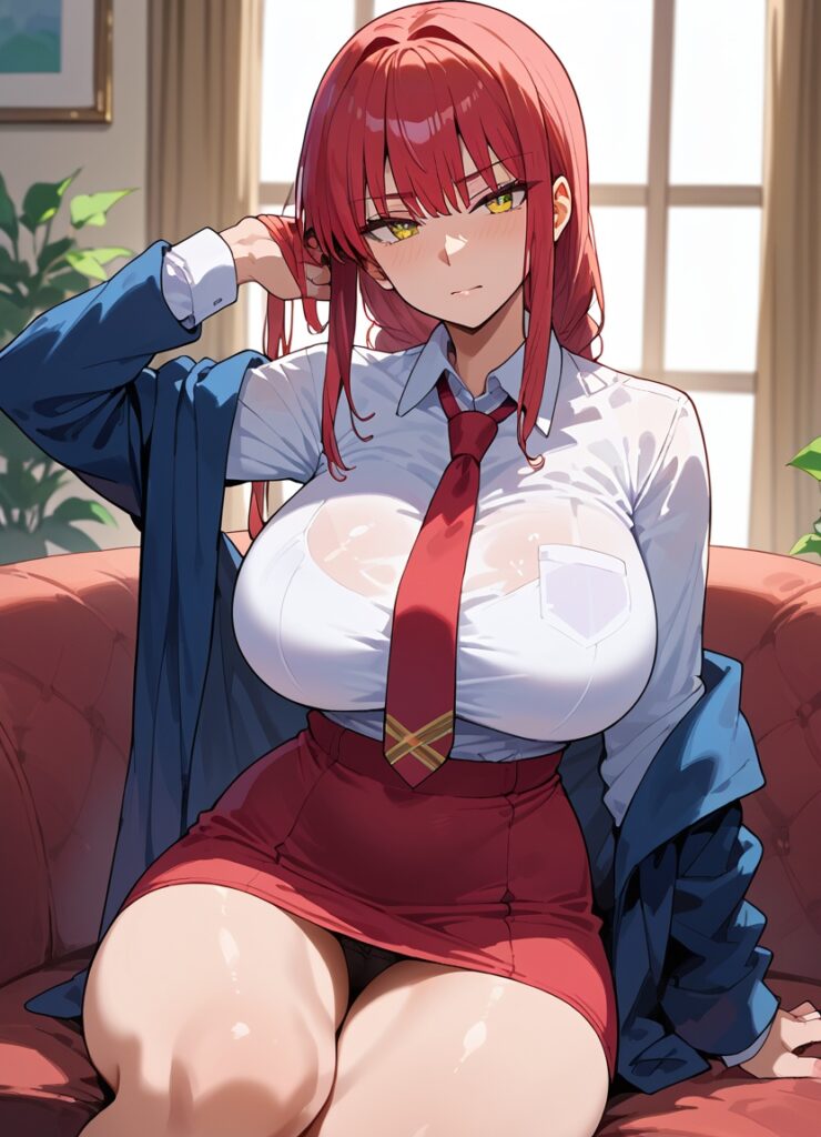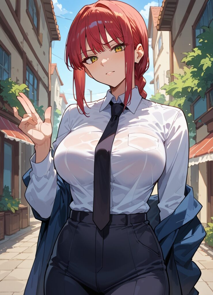 Hey, I’m Makima from Chainsaw Man – the Control Devil with perfect red hair, piercing yellow eyes, and a calm smile that hides a dangerous mind.